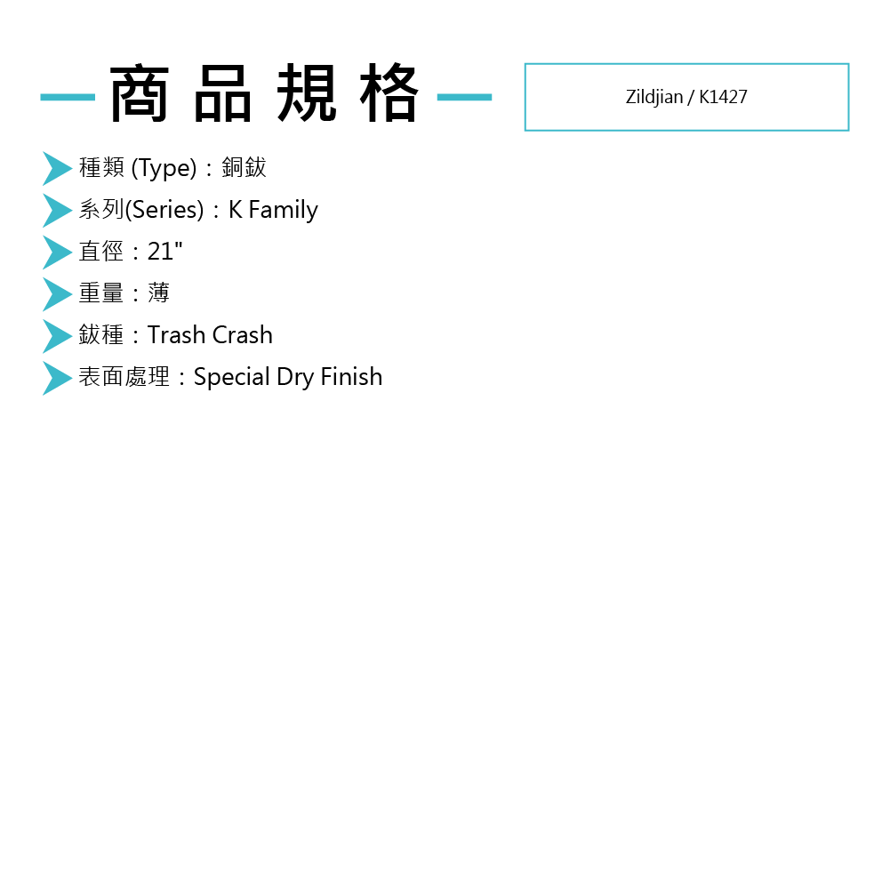 Zildjian / 21" K Custom Special Dry Trash Crash 銅鈸 (K1427)