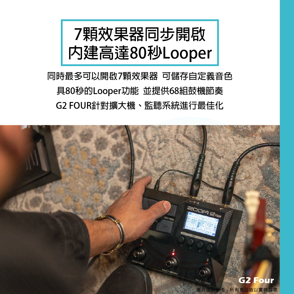 ◆ 可同步開啟7顆效果器,內鍵高達80秒Looper