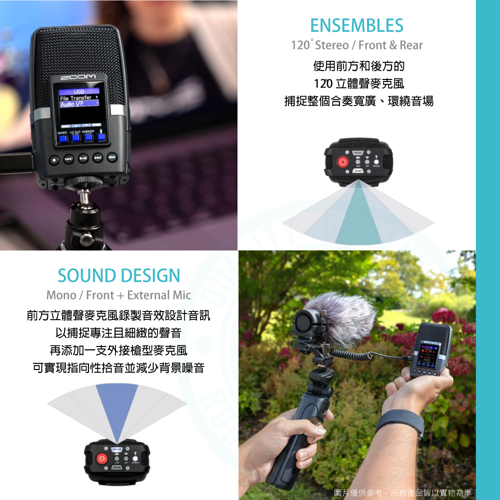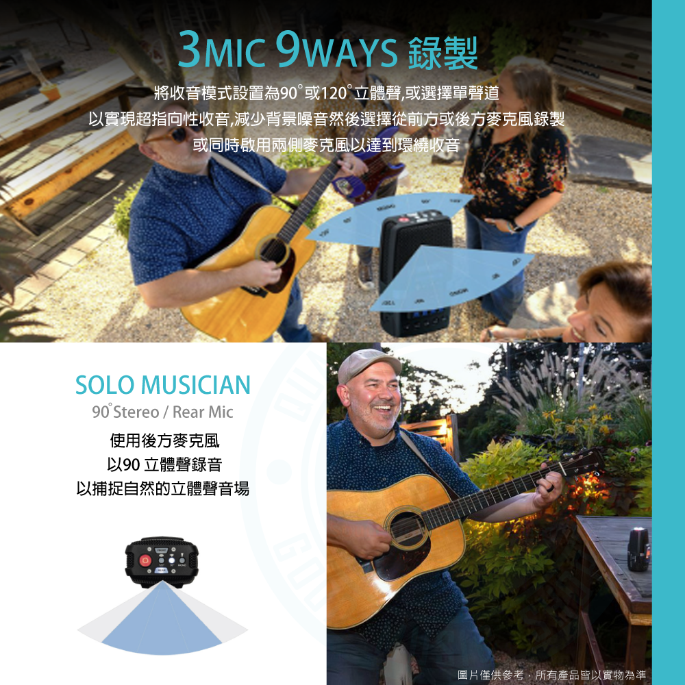 ◆三顆內建麥克風,提供多種立體聲與單聲道拾音模式