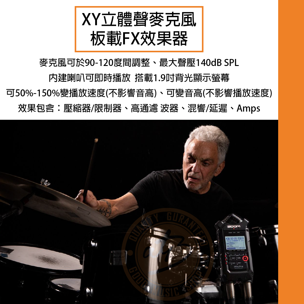 ◆ XY立體聲麥克風,可於90-120度間調整、最大聲壓140dB SPL