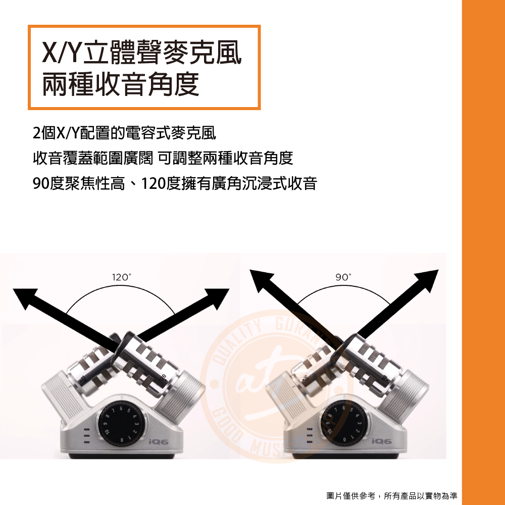 ◆ 2個X/Y配置麥克風具兩種收音角度:90度聚焦性高、120度廣角沉浸式收音