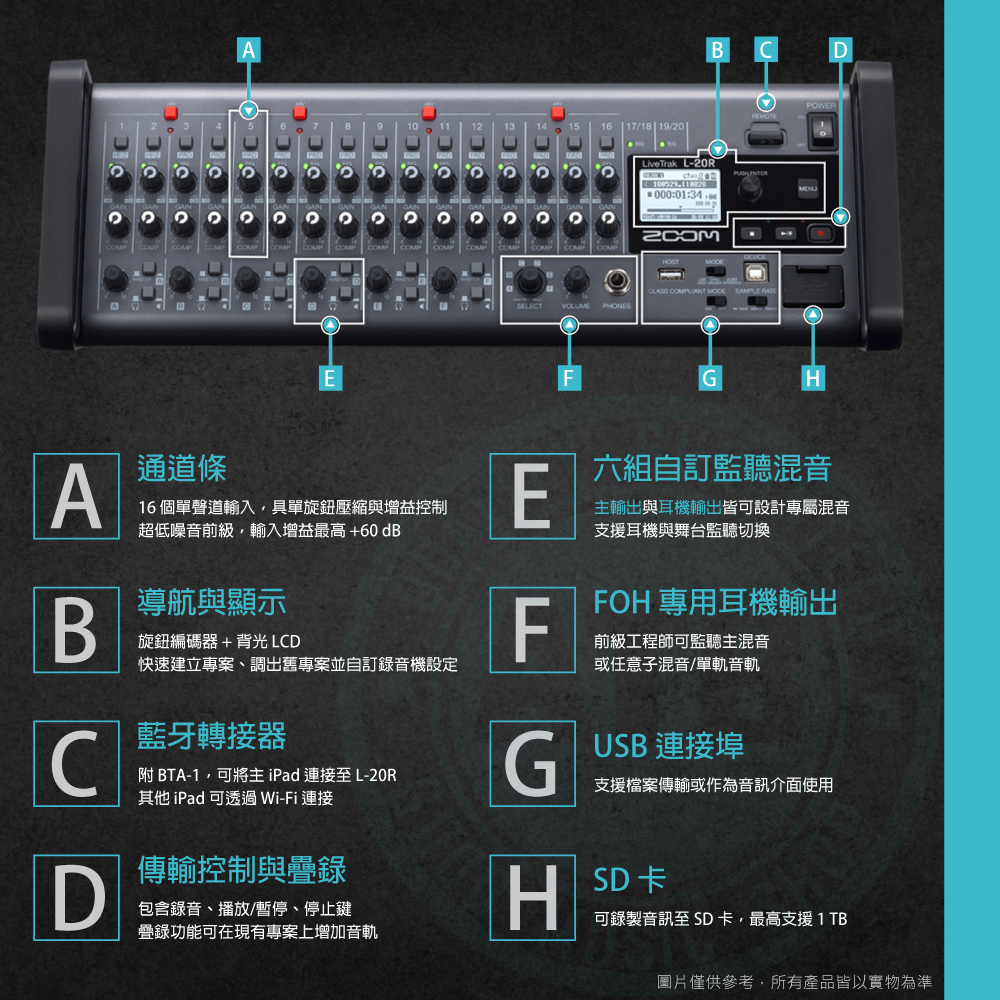 ◆ 22軌同步錄音,高解析錄製至 SD 卡與 DAW