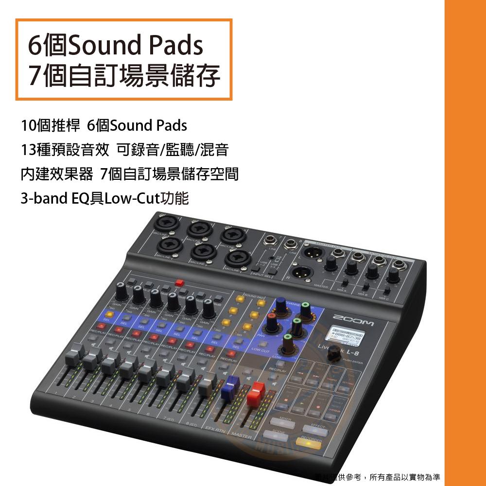 ◆ 10個推桿,6個Sound Pads,13種預設音效,可錄音/監聽/混音,內建效果器,7個自訂場景儲存空間