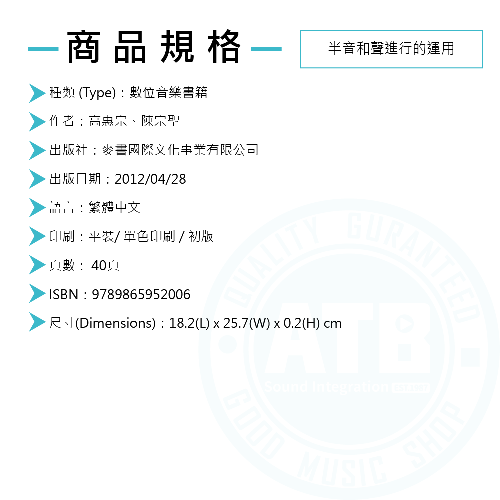 ◆此書將所有可能的半音進行機率與結果皆融入應用程式內