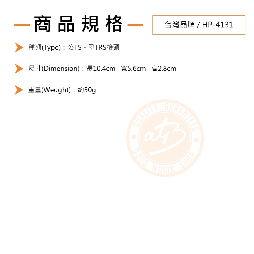 台灣品牌 / HP-4131 公TS - 母TRS 接頭